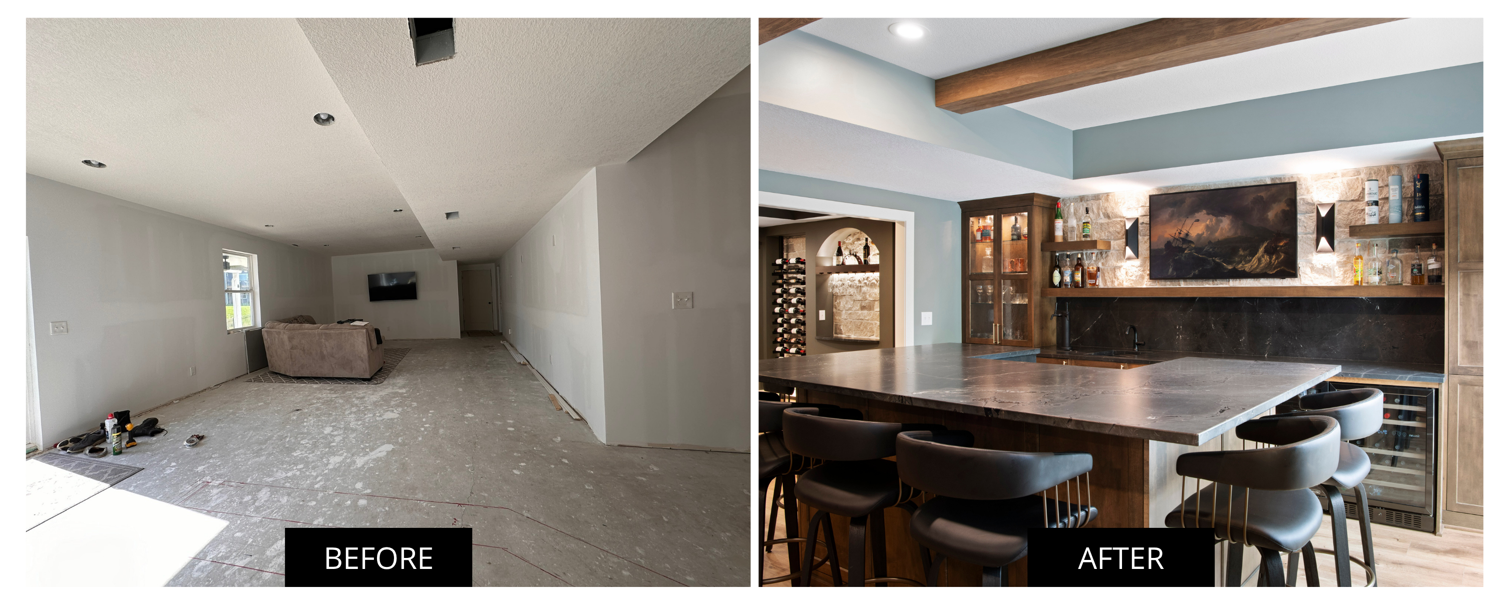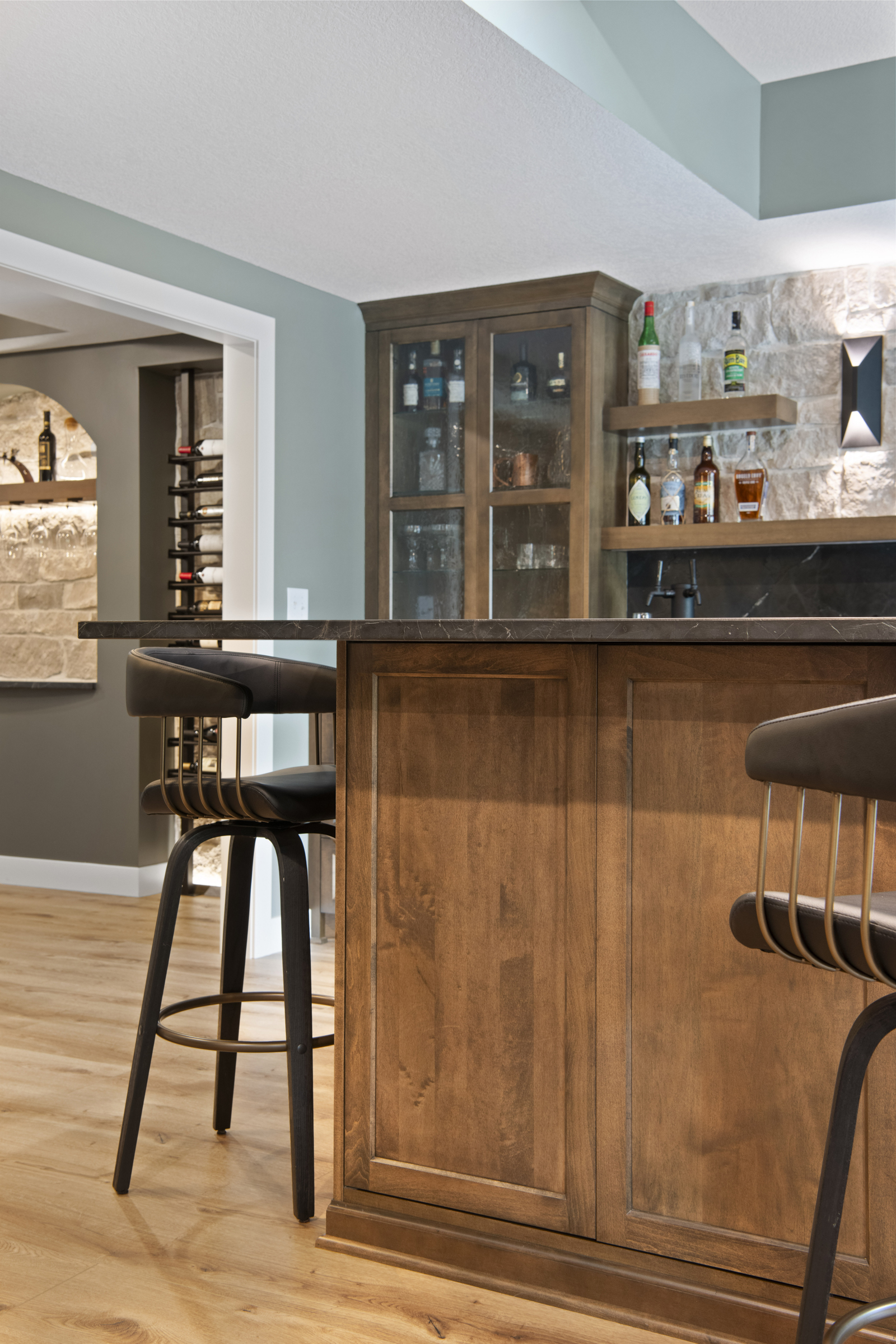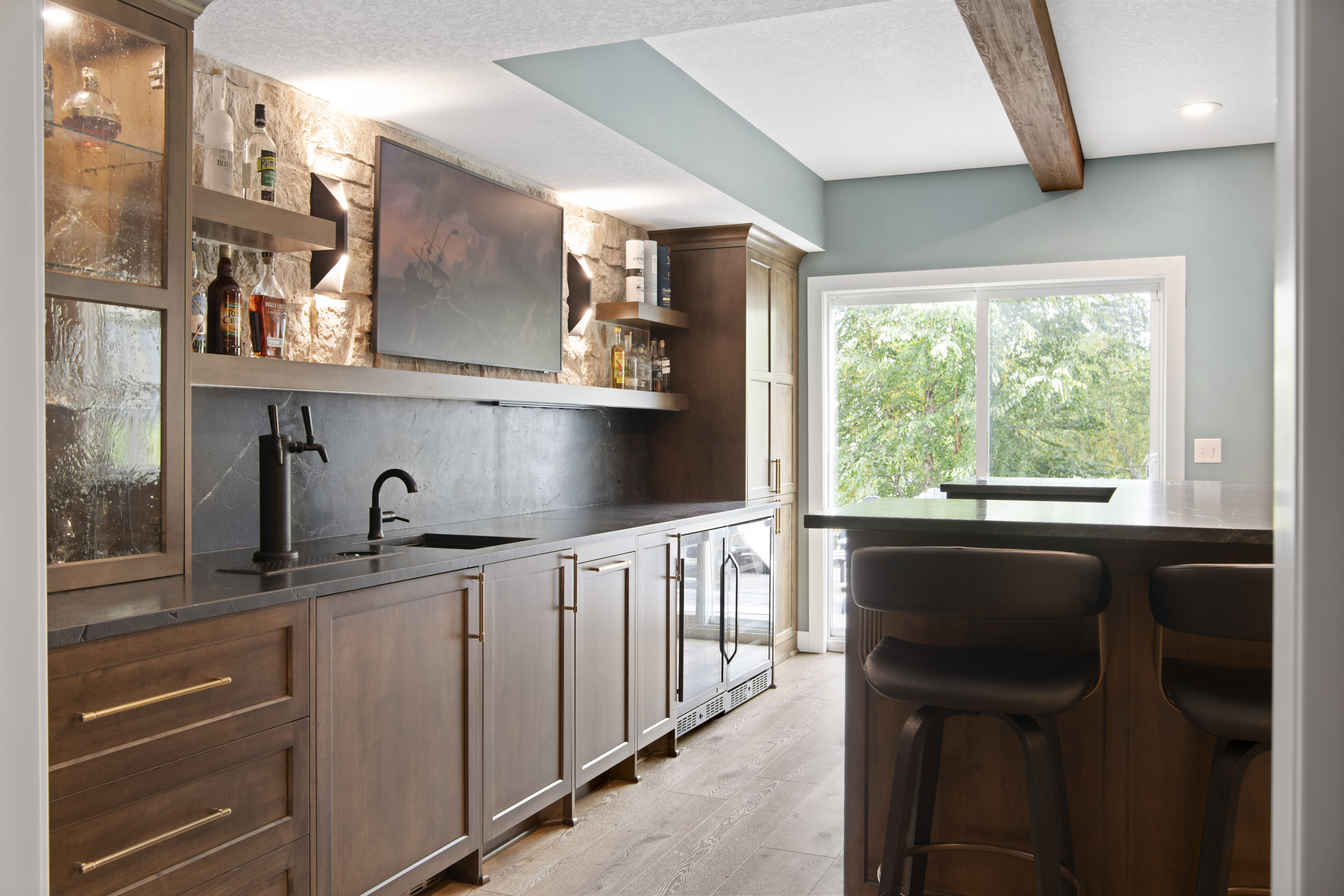 In collaboration with the homeowner’s designer and our trusted trade partners, this lower-level remodel transformed an underutilized space into a destination inspired by a dark, moody European pub. Rich finishes and intentional design choices create a warm, inviting atmosphere while elevating the overall character of the home.