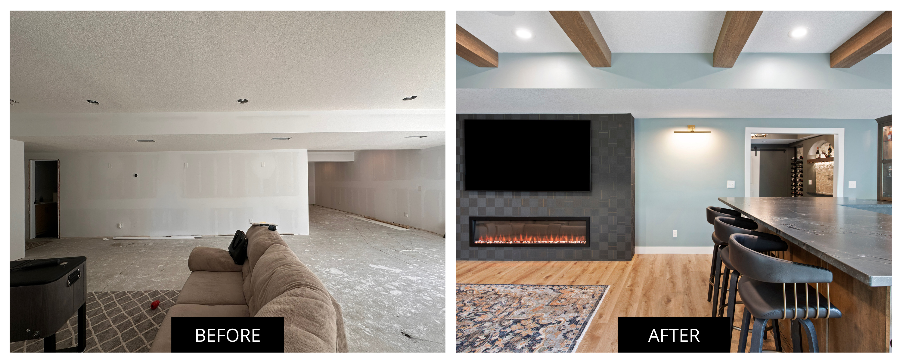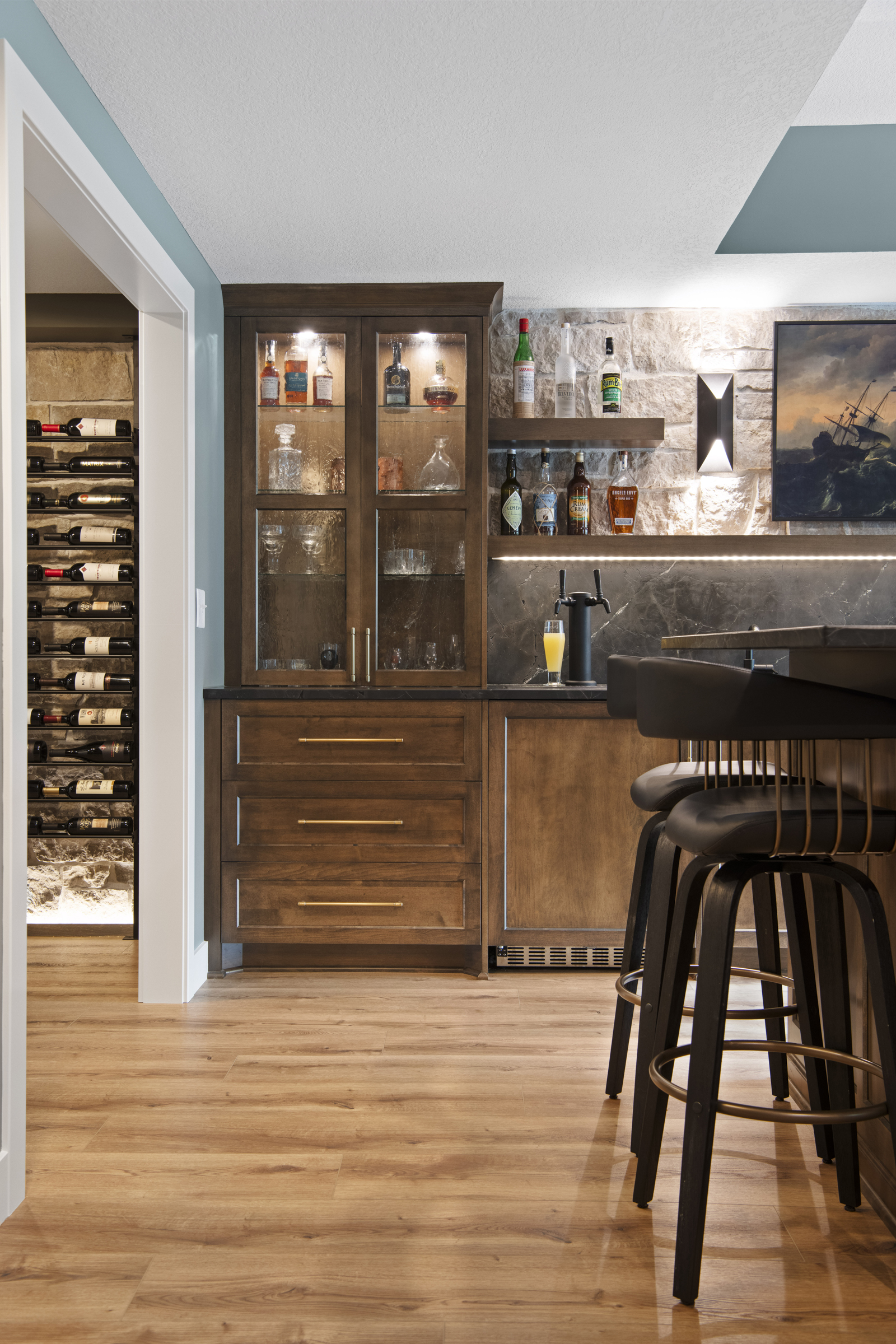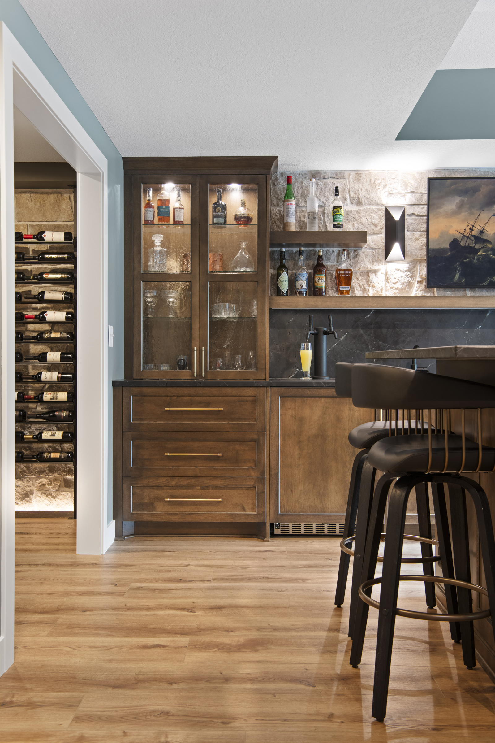 In collaboration with the homeowner’s designer and our trusted trade partners, this lower-level remodel transformed an underutilized space into a destination inspired by a dark, moody European pub. Rich finishes and intentional design choices create a warm, inviting atmosphere while elevating the overall character of the home.