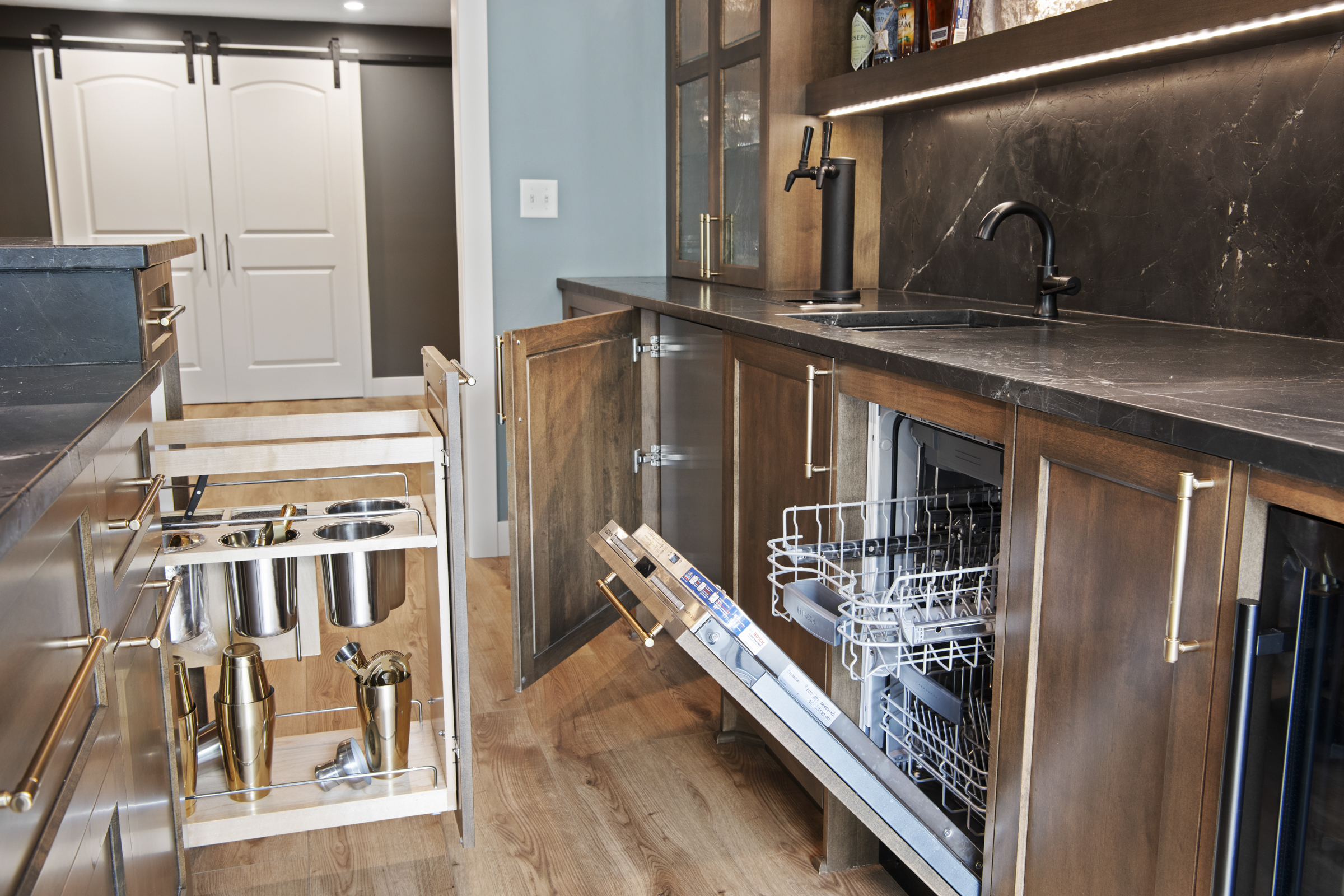 • Installed custom cabinetry and millwork to support a fully functional bar setup including a kegorator