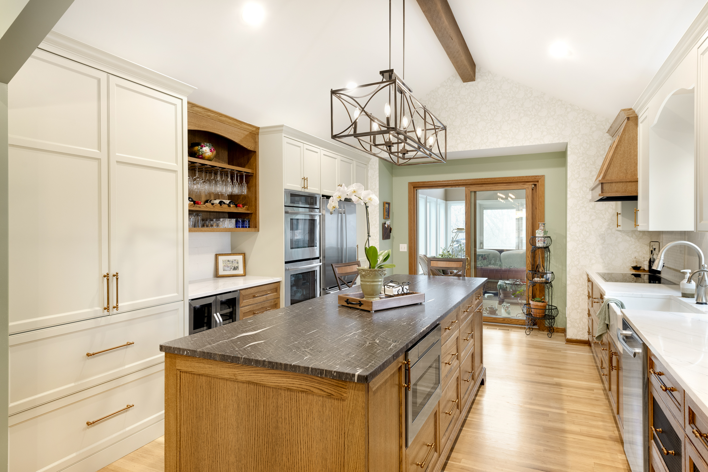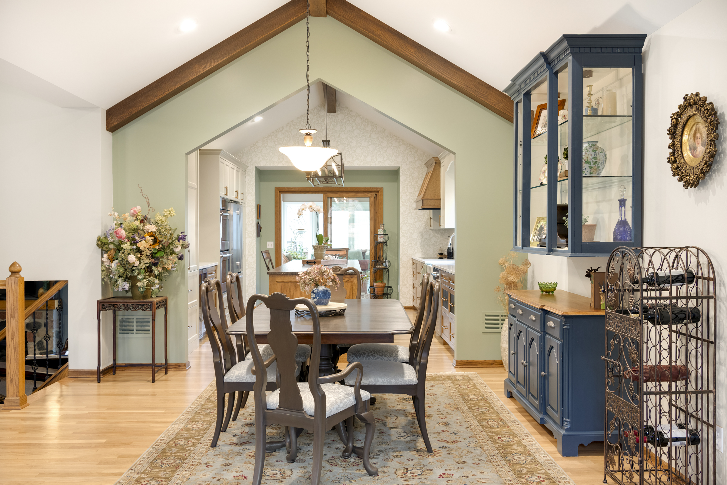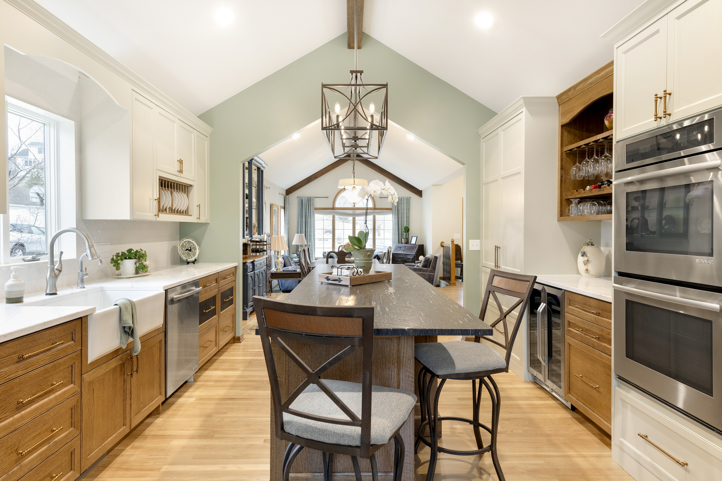 This kitchen remodel reimagined the home’s layout by removing the wall between the kitchen and dining room, creating an open, connected space designed for entertaining. By carrying the vaulted ceiling and adding a structural beam, the new kitchen blends seamlessly with the existing architecture while elevating the home’s overall design. Custom cabinetry, refined finishes, and thoughtful layout improvements result in a space that is both highly functional and visually cohesive.