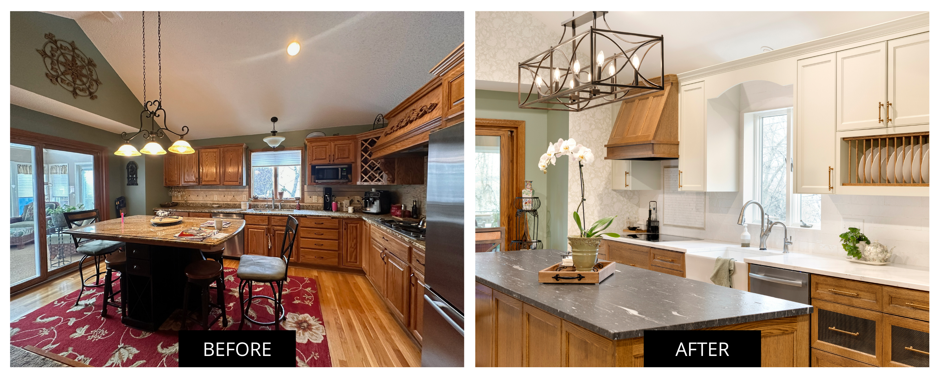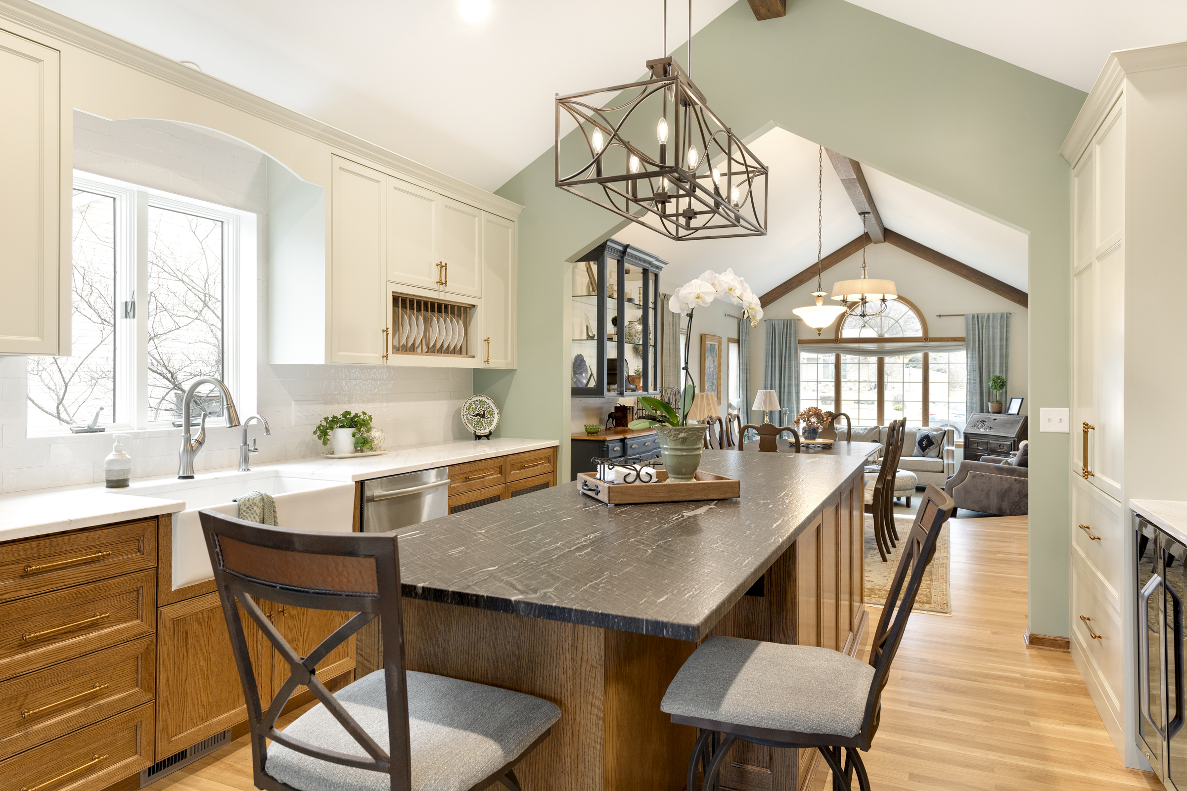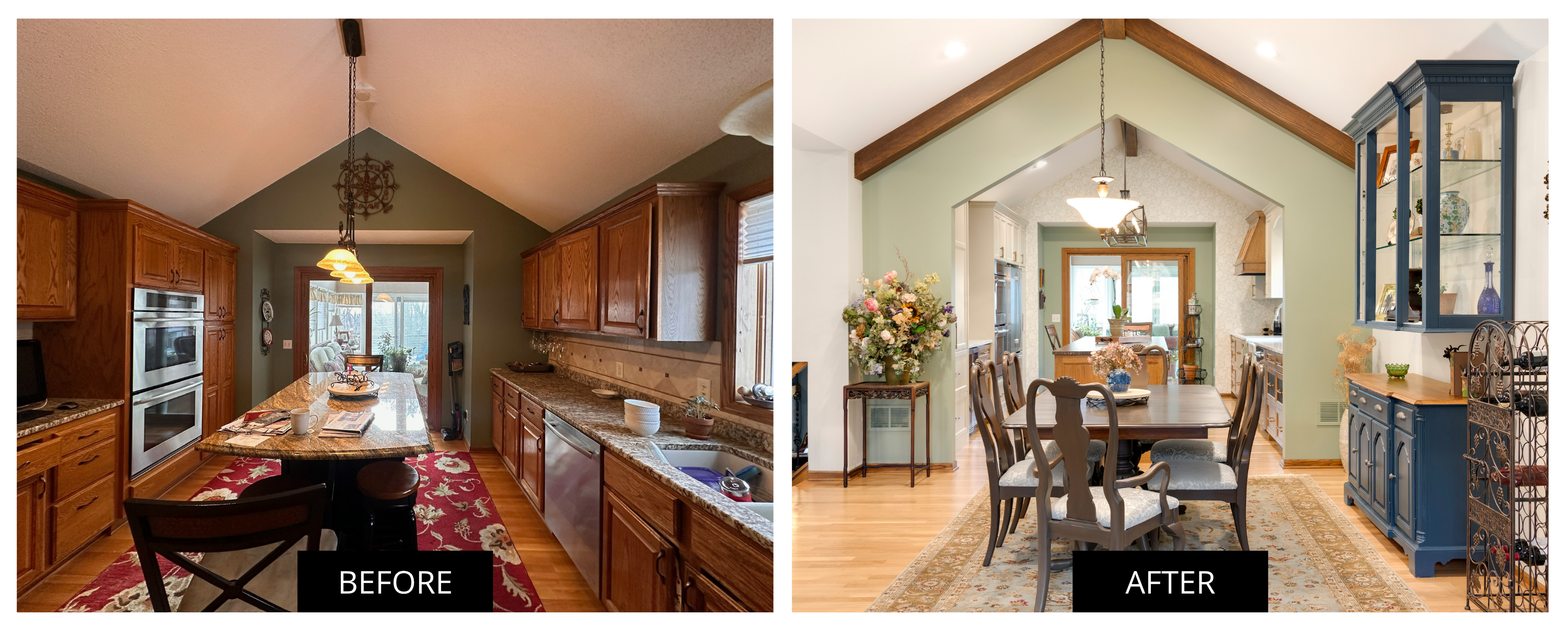 This kitchen remodel reimagined the home’s layout by removing the wall between the kitchen and dining room, creating an open, connected space designed for entertaining. By carrying the vaulted ceiling and adding a structural beam, the new kitchen blends seamlessly with the existing architecture while elevating the home’s overall design. Custom cabinetry, refined finishes, and thoughtful layout improvements result in a space that is both highly functional and visually cohesive.