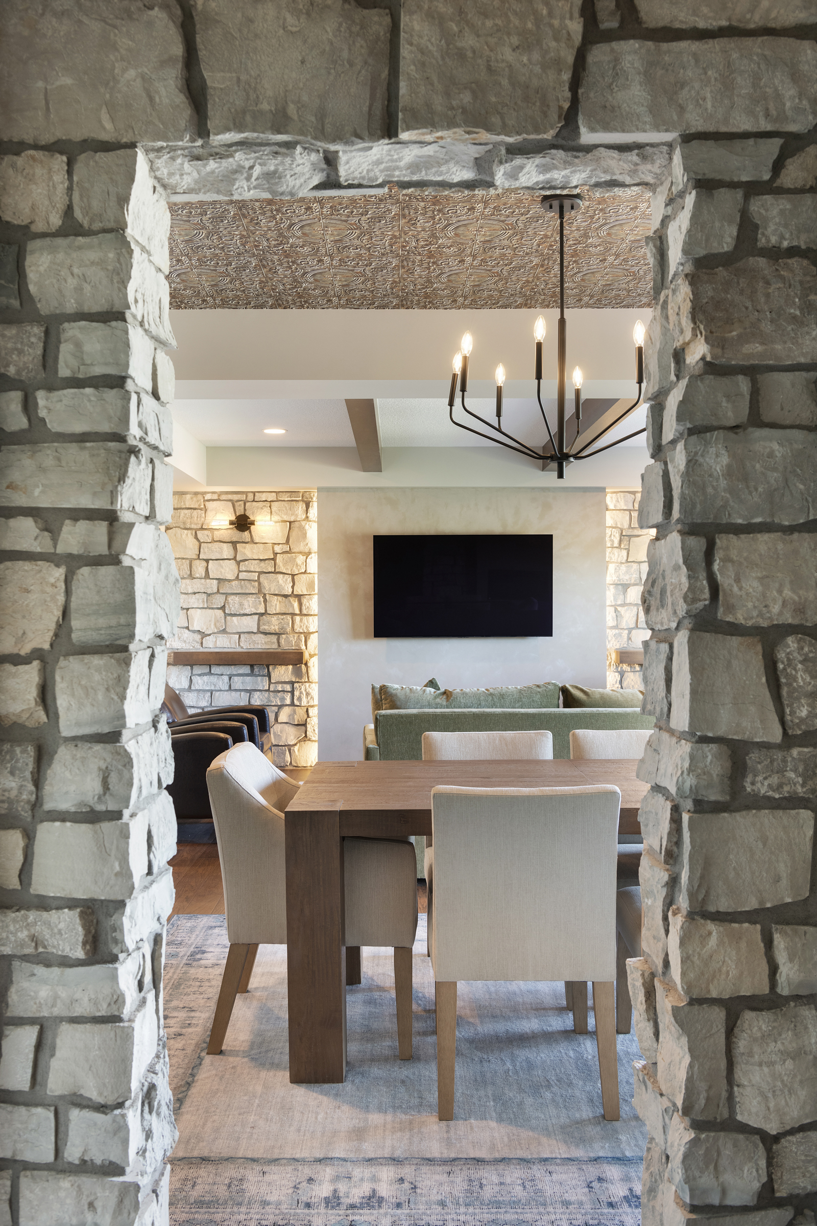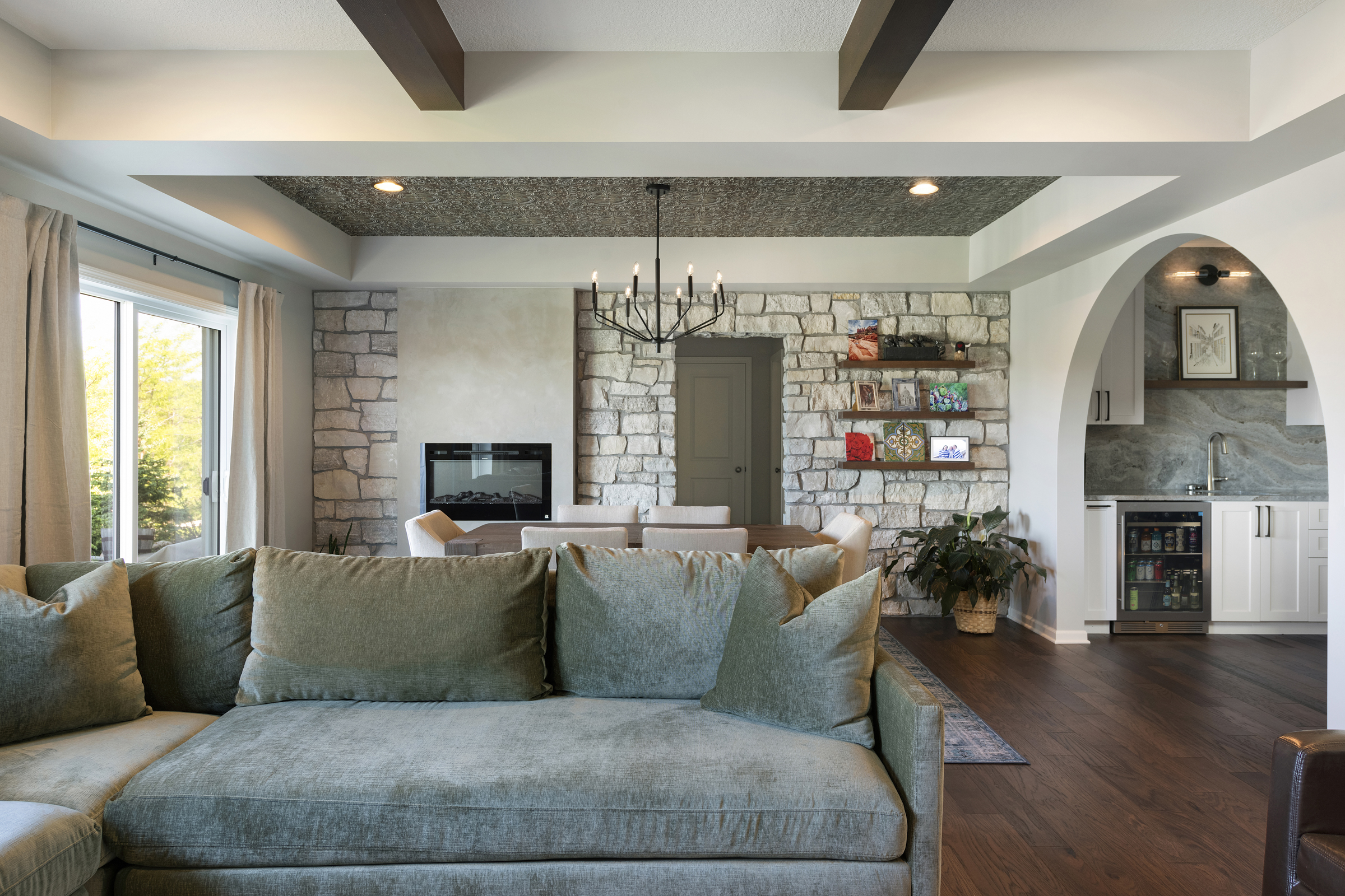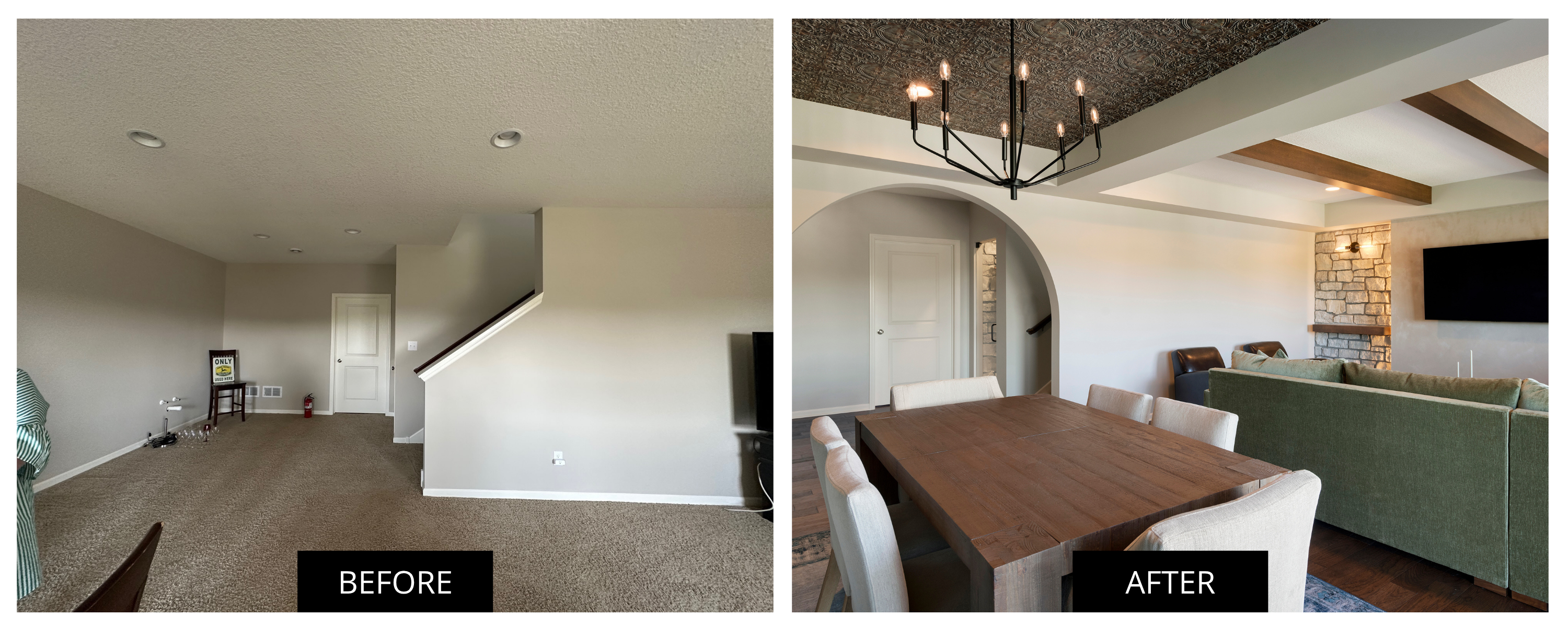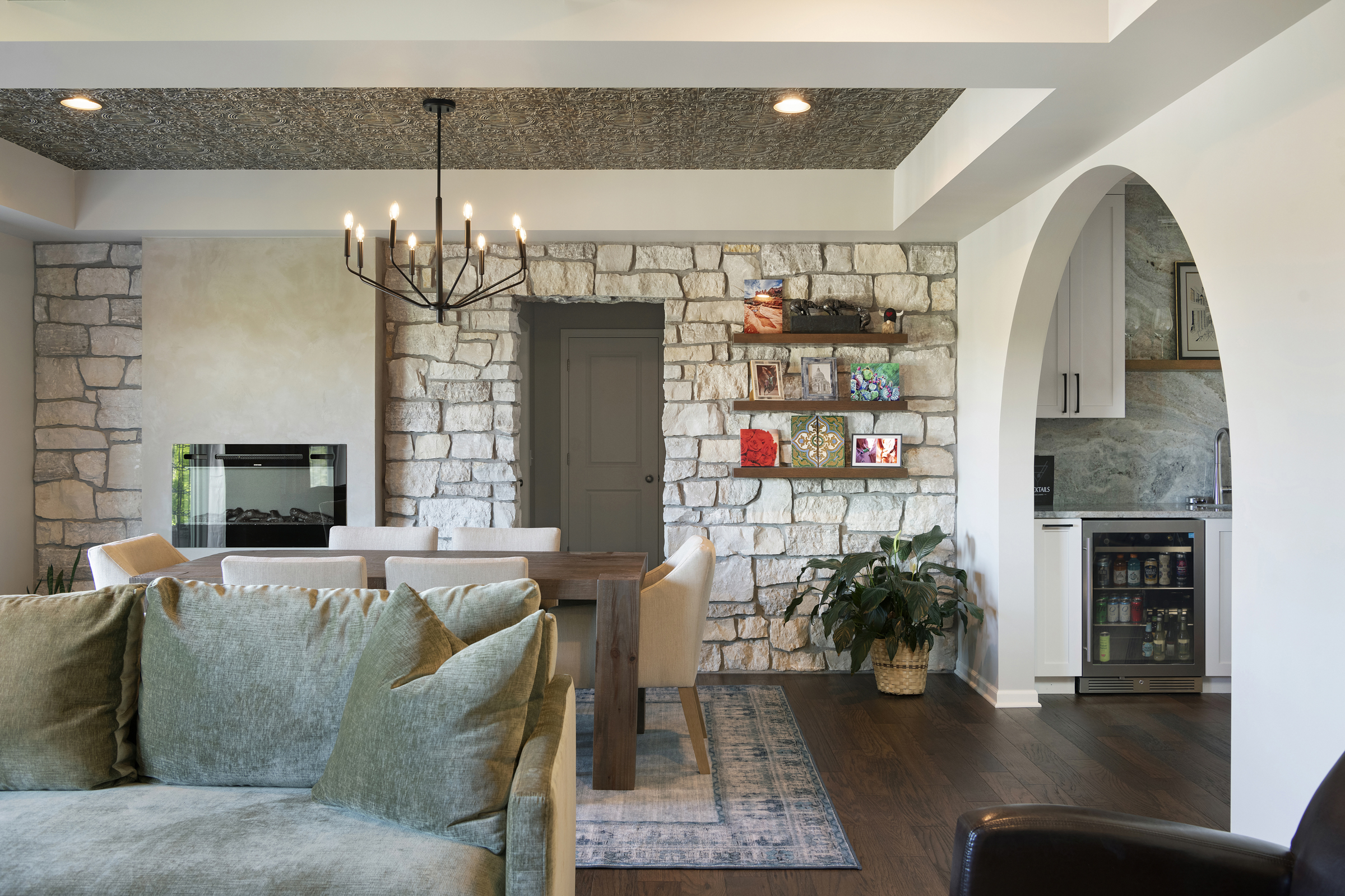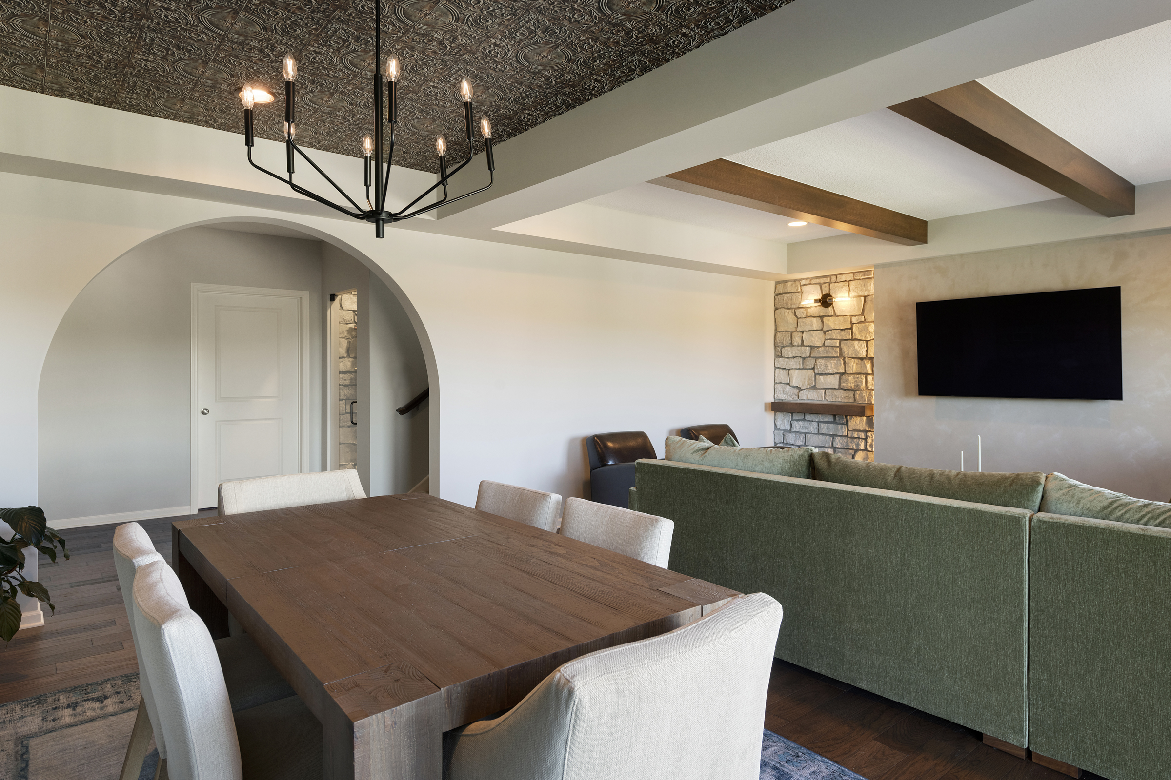 This lower-level remodel transformed a builder-grade lower level into a luxurious, multi-purpose entertainment space. Designed in collaboration with homeowners and design partners, the project blends high-end finishes with thoughtful functionality—featuring custom plaster detailing, a built-in wine cellar, and tailored cabinetry. Every element was crafted to elevate both the experience of the space and the overall value of the home.