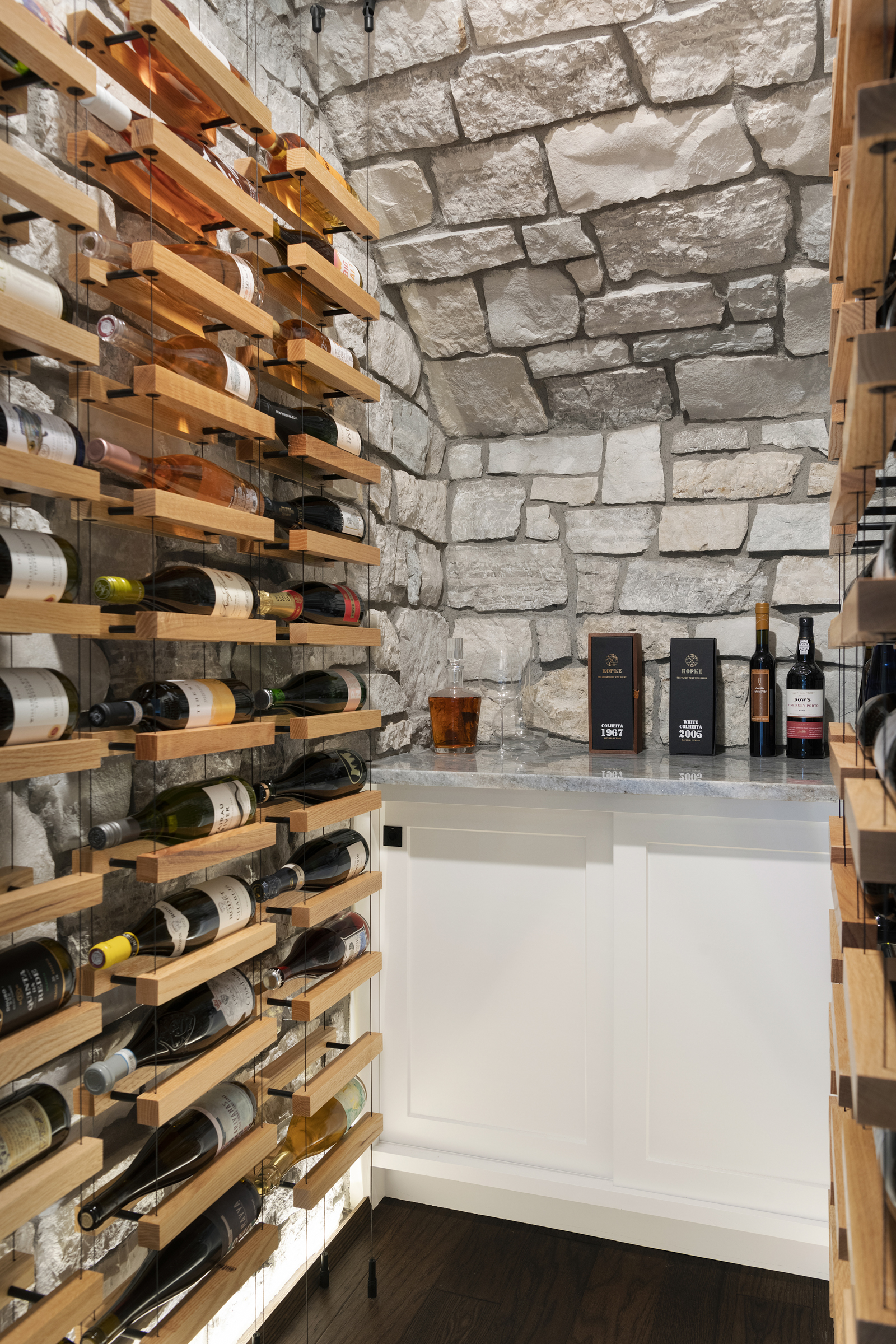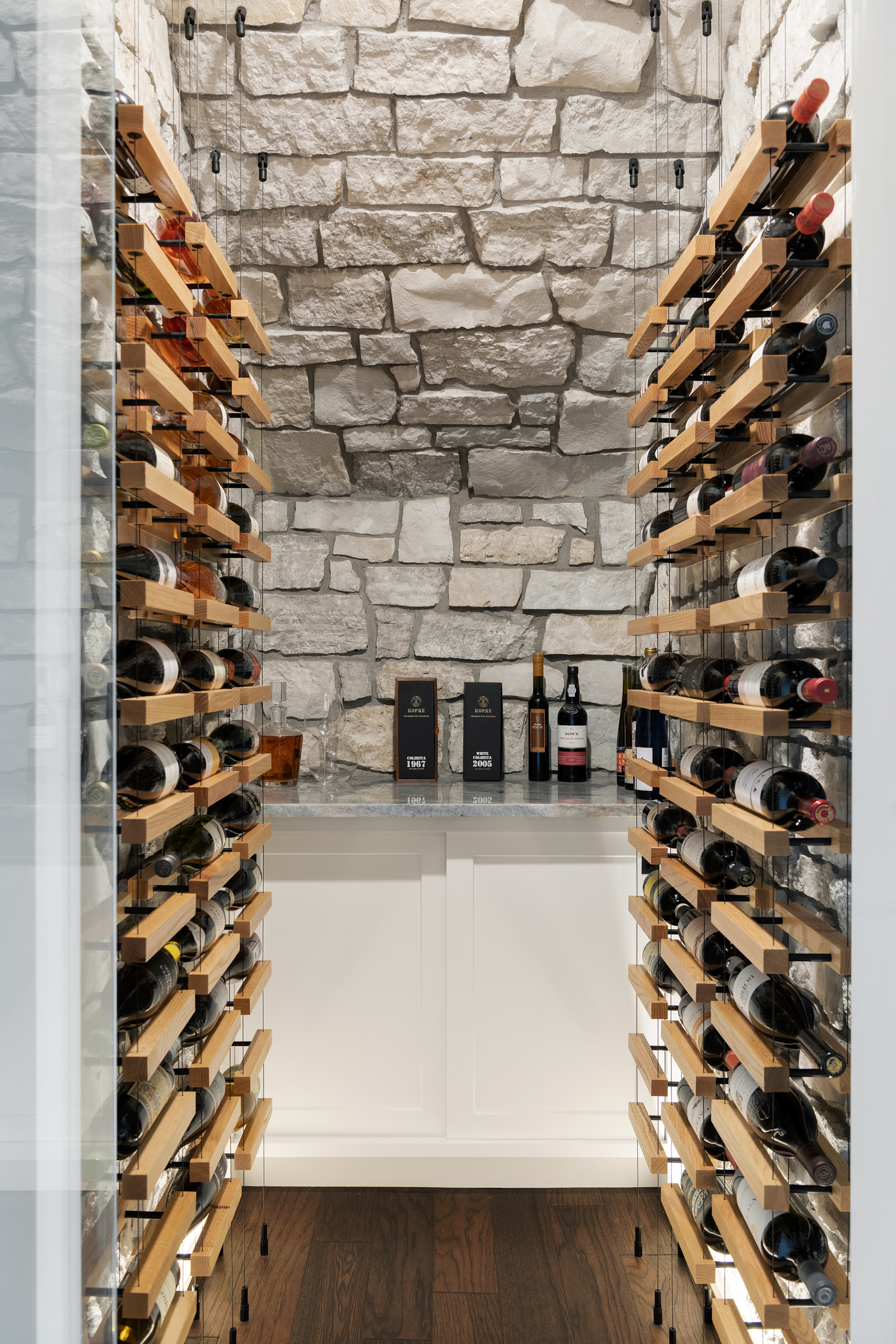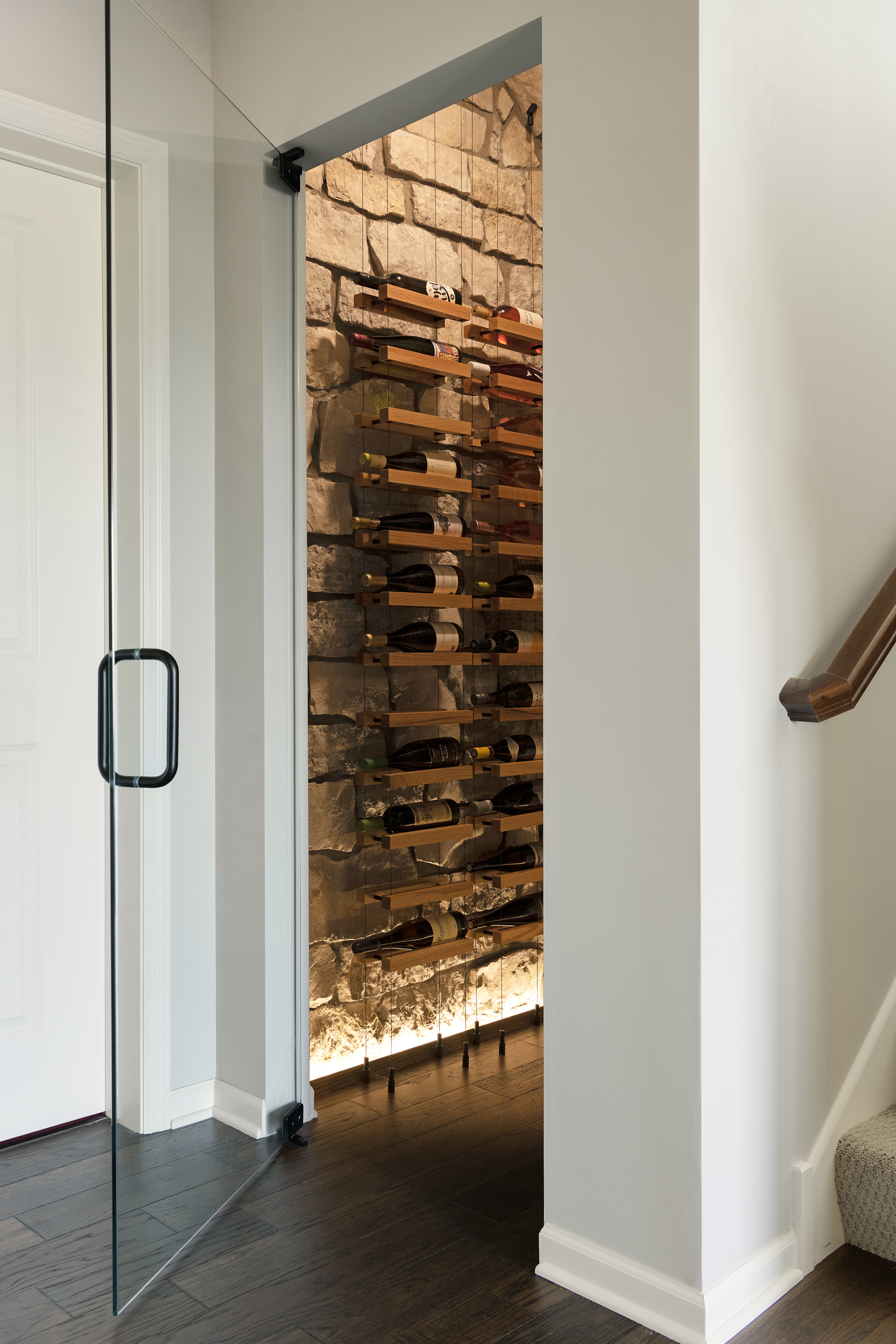 • Full view glass door into wine cellar with hidden, yet functional, under-stair storage