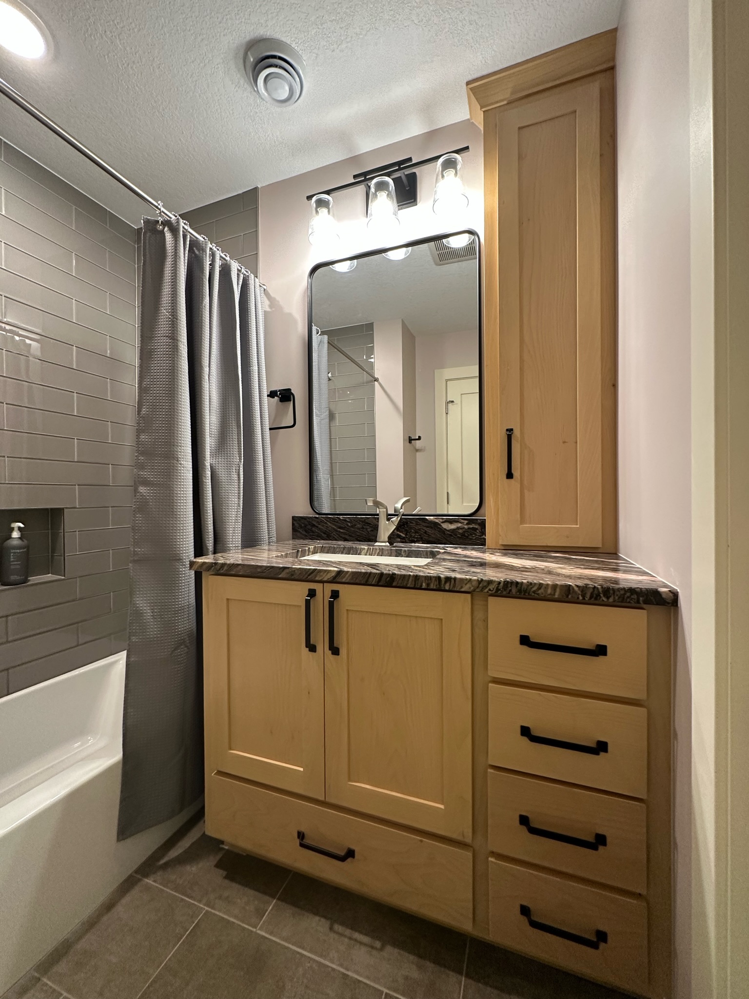 This bathroom remodel reimagined a back-to-back layout that once resulted in an oversized hall bath and a constrained primary ensuite. Through a strategic reconfiguration of the footprint, both spaces were transformed into balanced, highly functional environments that enhance flow, comfort, and the overall livability of the home.